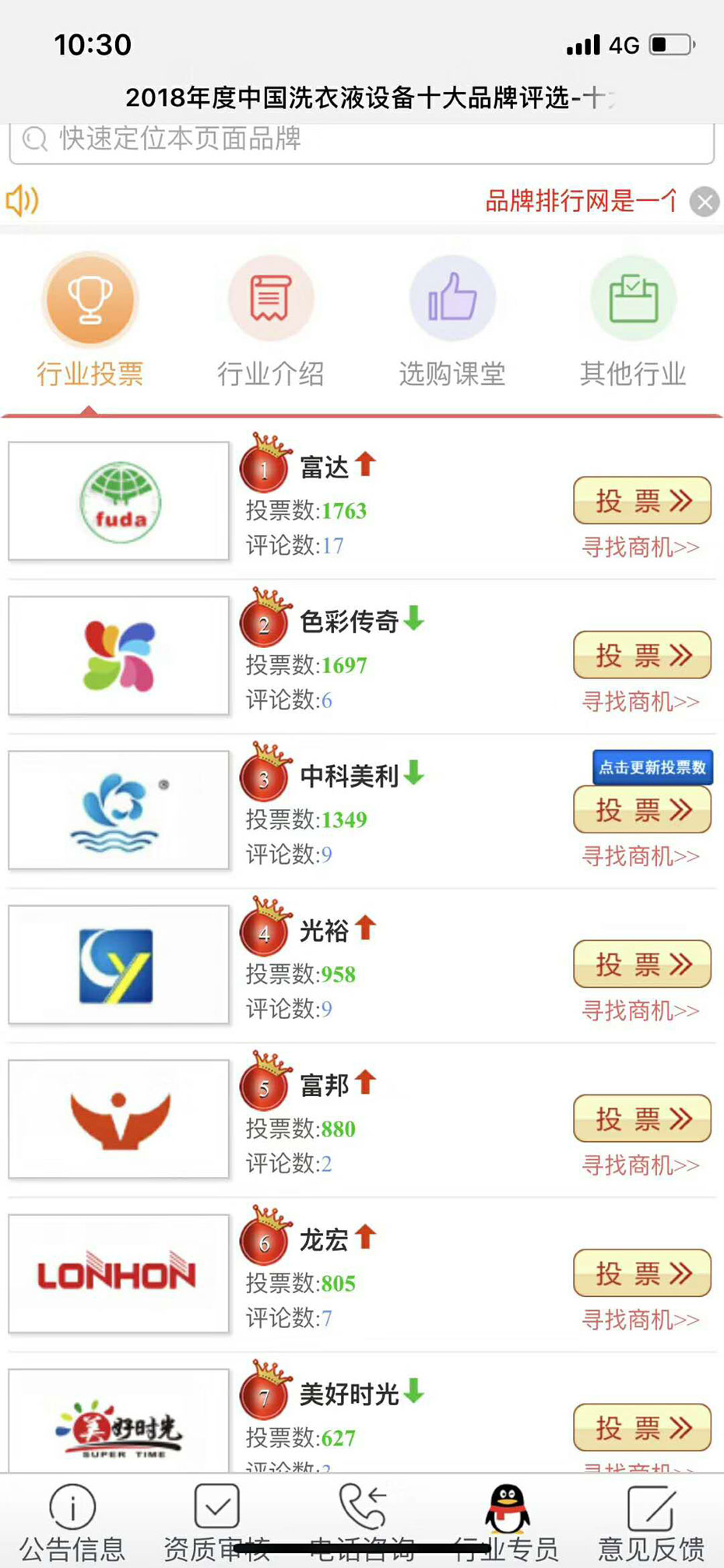 中國洗滌設備行業(yè)大眾投票暫居榜首!