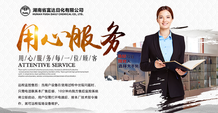 哪怕出售一套洗潔精設備洗衣液設備車用尿素設備只有幾百元利潤,富達日化也會竭盡全力為用戶上門安裝調(diào)試,并免費指導洗潔精洗衣液車用尿素生產(chǎn)技術,直到用戶能夠親手獨立熟練操作生產(chǎn)出達到國家標準的合格產(chǎn)品為止。