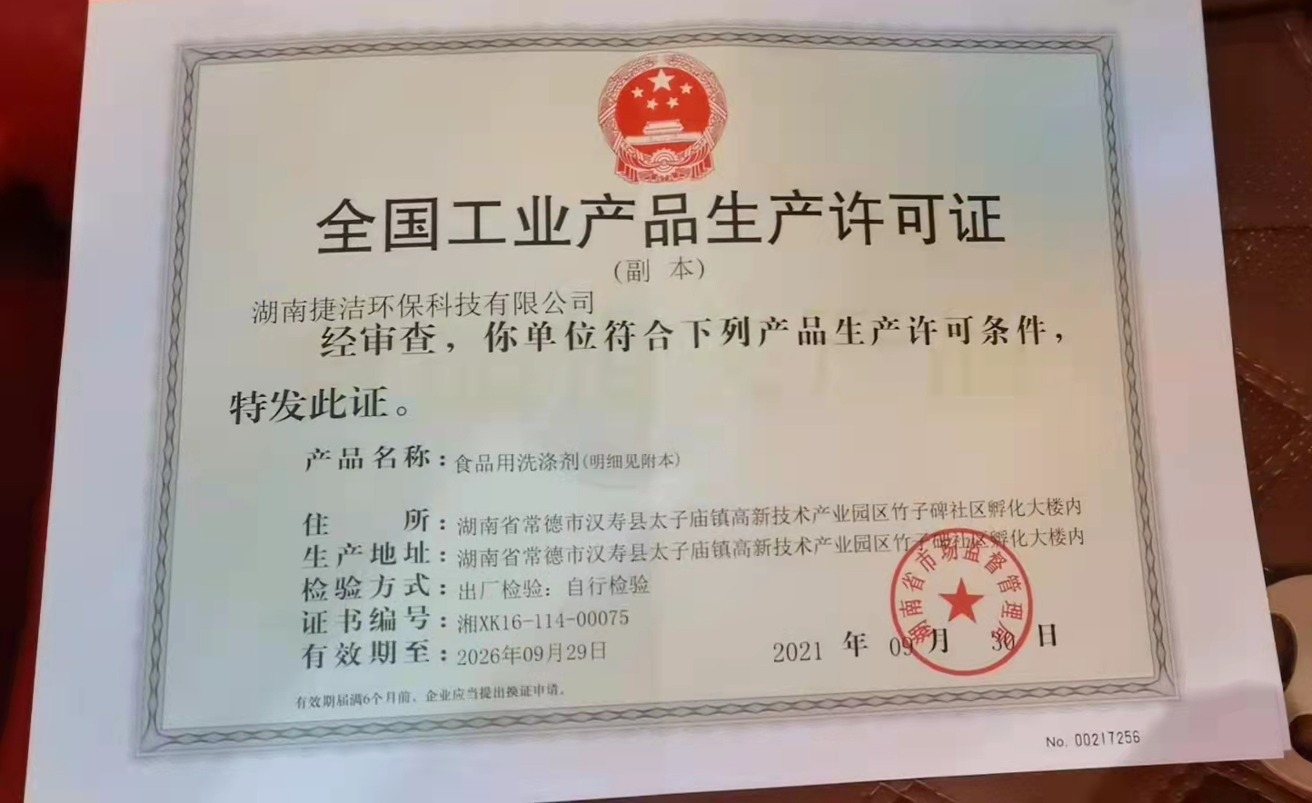 祝賀常德環(huán)保科技取得洗潔精全國(guó)工業(yè)產(chǎn)品生產(chǎn)許可證!