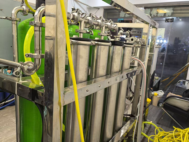 三是外觀貌似標(biāo)準(zhǔn)化配置的水處理設(shè)備中竟然沒(méi)有必備的反滲透膜,二是用價(jià)值每根17元的pp棉代替了每根價(jià)值上千元的反滲透膜,導(dǎo)致水質(zhì)量不達(dá)標(biāo),水處理中竟然沒(méi)有原水泵,沒(méi)有高壓泵,沒(méi)有電導(dǎo)率檢測(cè)儀,而是自來(lái)水管自流到簡(jiǎn)易水處理中,當(dāng)環(huán)境溫度高時(shí)產(chǎn)品容易發(fā)臭變質(zhì)。