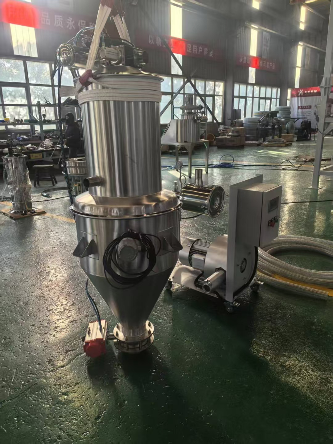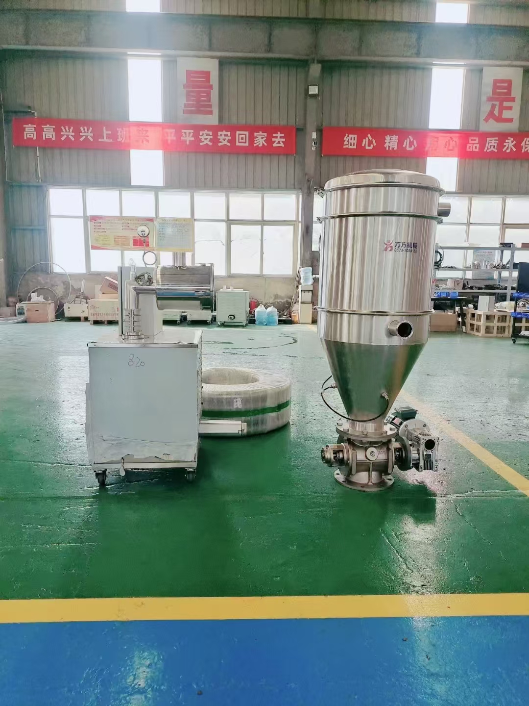 一種真空無塵粉狀原料加料機(jī)的使用,不僅有利于人身健康,更重要的是提高幾倍的加料速度,價(jià)格不貴,省時(shí)省力少危害,用過的老板都說好!