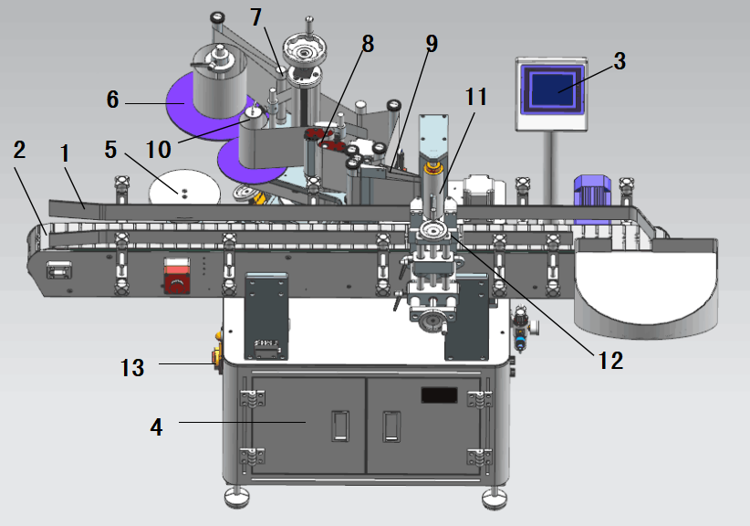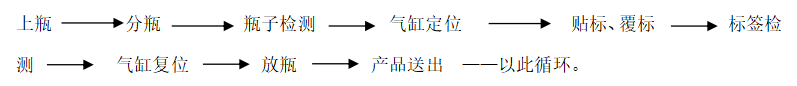 6, 上端分瓶機構(gòu)放一個瓶子——依上循環(huán)連續(xù)貼標。