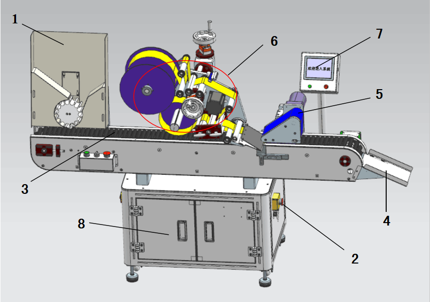5覆標(biāo)機(jī)構(gòu):將貼附在產(chǎn)品上的標(biāo)簽壓緊。