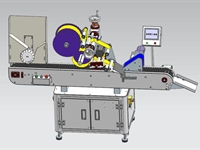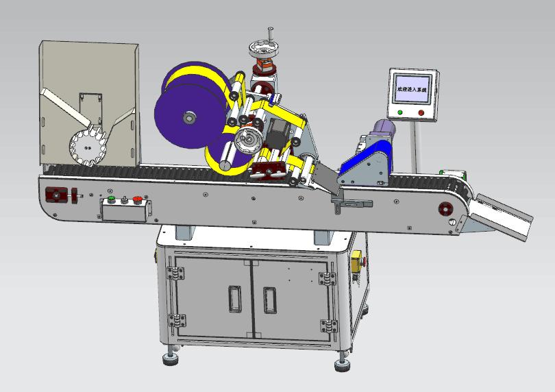 3, 產(chǎn)品在輸送帶的帶動(dòng)下,自動(dòng)向右側(cè)貼標(biāo)機(jī)構(gòu)運(yùn)行;